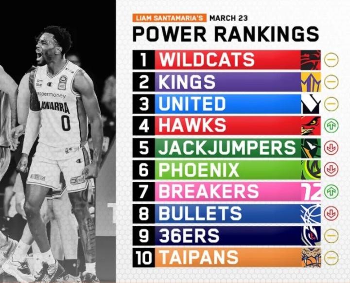 NBL最新实力榜:珀斯野猫继续领跑,凤凰降至第6,子弹队第8
