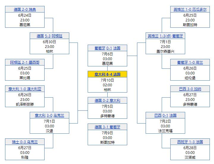 在随后的淘汰赛中,葡萄牙人上下齐心,先后击败荷兰与英格兰两大强队,时隔40年再度杀入世界杯4强。遗憾的是,他们在半决赛中0:1不敌齐达内领军的法国队,在三四名争夺战中又1:3输给了德国队。