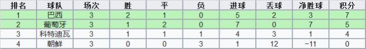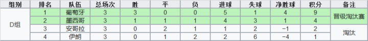 遗憾的是,由于首阶段丢分过多,葡萄牙虽然在第2阶段表现神勇,但最终也仅能以6胜3平1负积21分的成绩排名第2,只能参加附加赛。