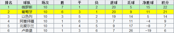 首阶段结束,葡萄牙仅仅取得了2胜2平1负积8分的糟糕成绩,不仅距离榜首位置的俄罗斯差距扩大,甚至还存在被以色列反超的风险。