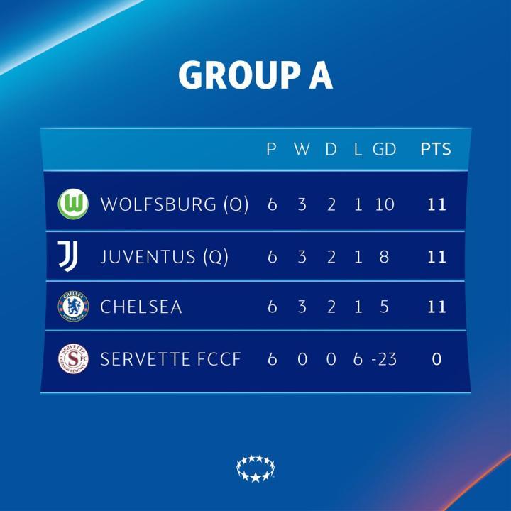 狼堡3胜2平1负(对阵尤文1平1负,对阵切尔西1胜1平,双杀塞尔维特),积11分,三队同分情况下由于净胜球和胜负关系占优,居小组第一。