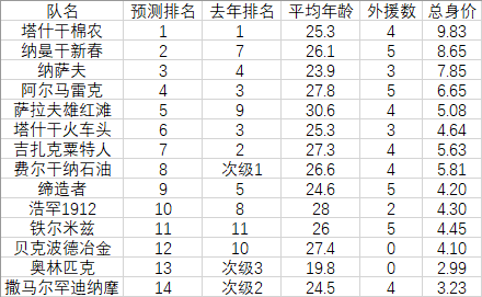 最后给出本人预测的新赛季排名,如有不同看法欢迎在评论区交流!