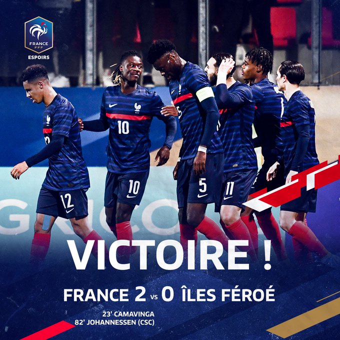 法国足球资讯北京时间3月25日凌晨,法国U21在主场迎战法罗群岛U21,最终凭借卡马文加的远射进球和对手的乌龙球,法国青年队以2-0战胜对手,赢下了预选赛的又一场胜利。