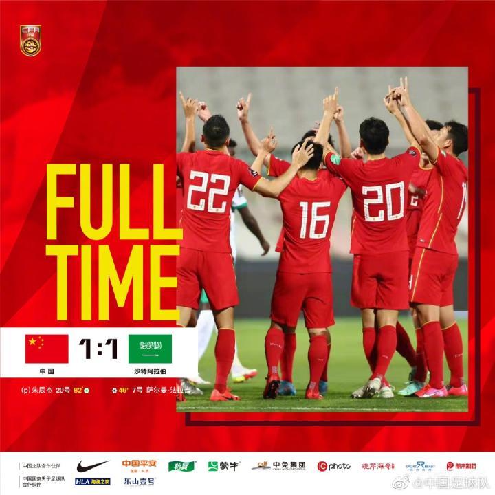 朱辰杰下半时点射建功,国足1-1艰难战平沙特