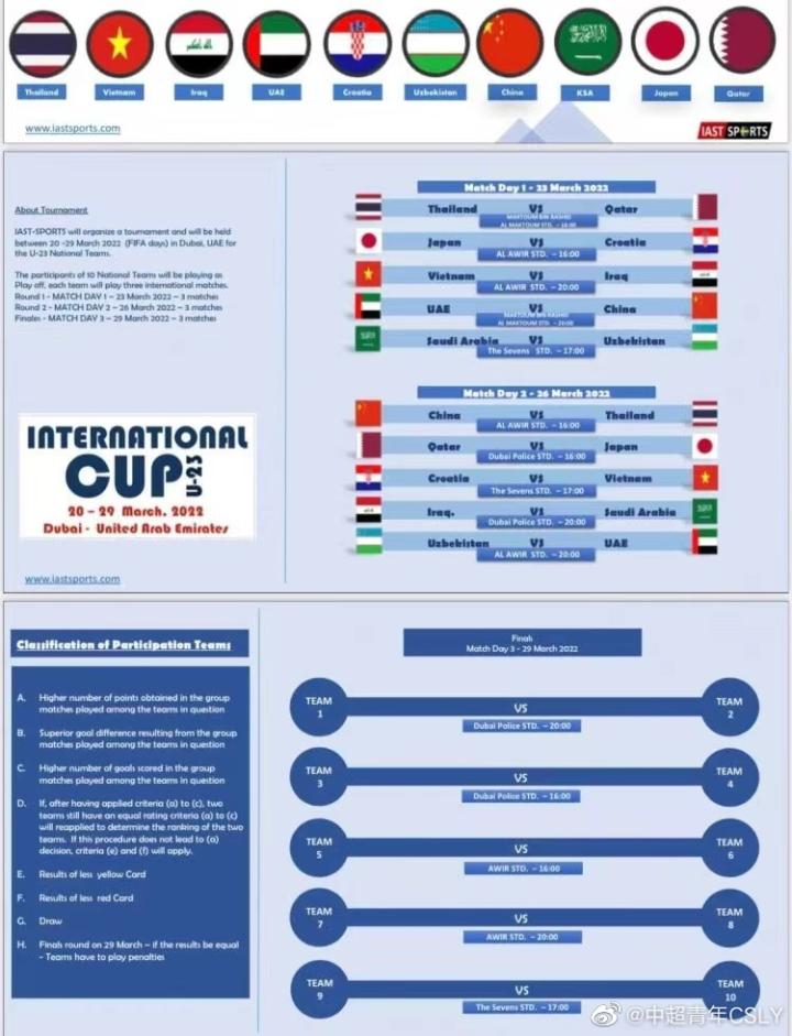 【迪拜杯U23国足第二轮比赛预告】【比赛性质】“...中超青年CSLY @懂球帝2022-03-26 14:27【迪拜杯U23国足第二轮比赛预告】 【比赛性质】“迪拜杯”23岁以下国际足球邀请赛 【对阵双方】中国 VS 泰国 【比赛时间】3 月 26 日 20 点 00 分 【直播平台】CCTV5、央视频、咪咕视频 展开更多