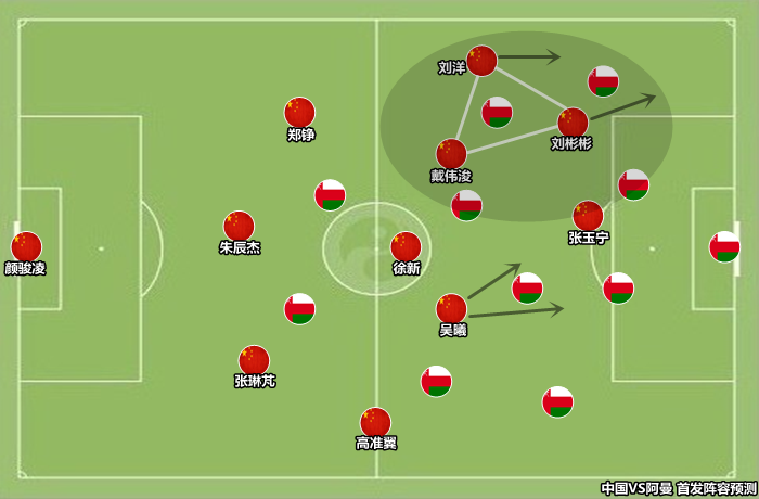 (图)阿曼的阵地进攻以边路传中结合抢二点为主,也会尝试肋部直塞身后。国足的防守体系不够严谨,张琳芃和徐新等人的经验就显得非常重要。