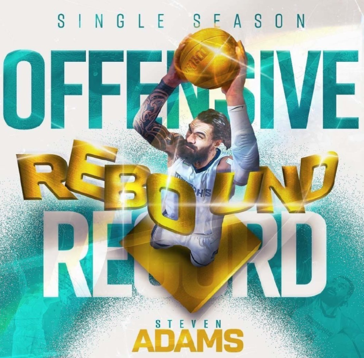 至此,亚当斯打破了灰熊队的队史单赛季个人前场篮板总数纪录,纪录此前的保持者是已经退役的“黑熊”兰多夫。亚当斯仅仅加盟灰熊队一个赛季,就迅速破了一项球队的历史纪录,确实是有一套。