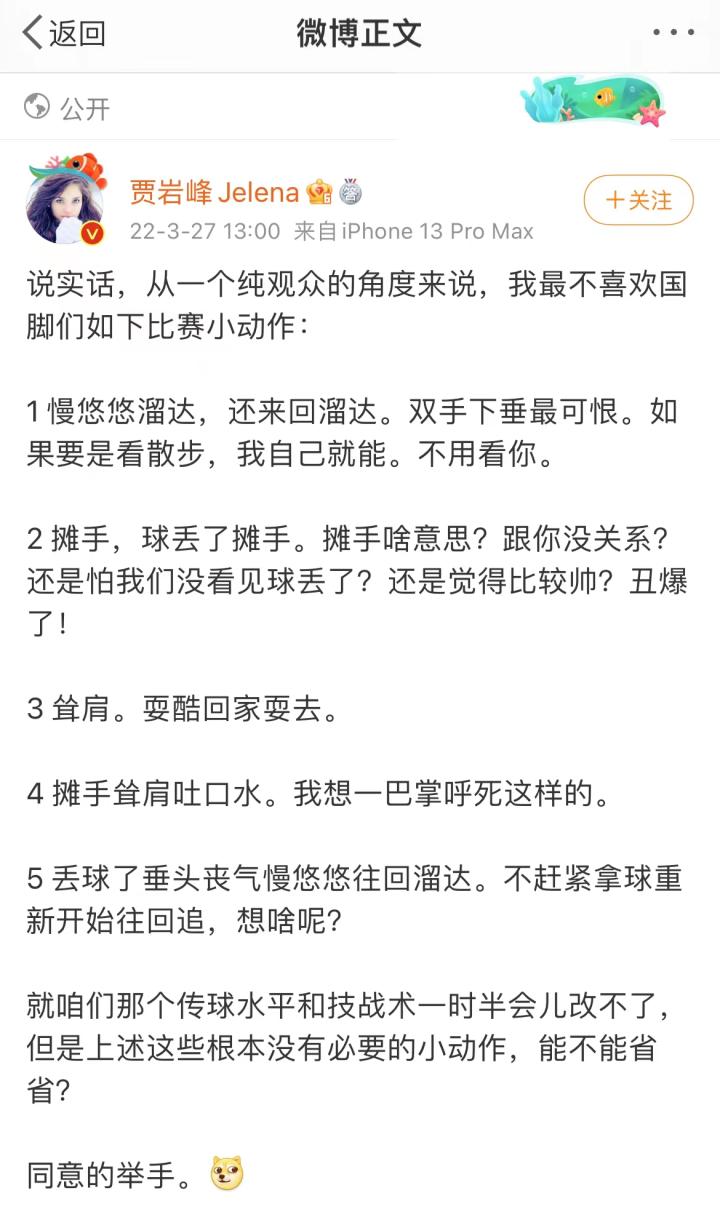 明明最最普通甚至不看足球的人都明白的事,怎么这位采访足球20多年的记者看不明白呢?她是买的记者证还是揣着明白装糊涂?一句“同意的举手”暴露了自己。不用看,评论区几乎全是一阵叫好之声啊!