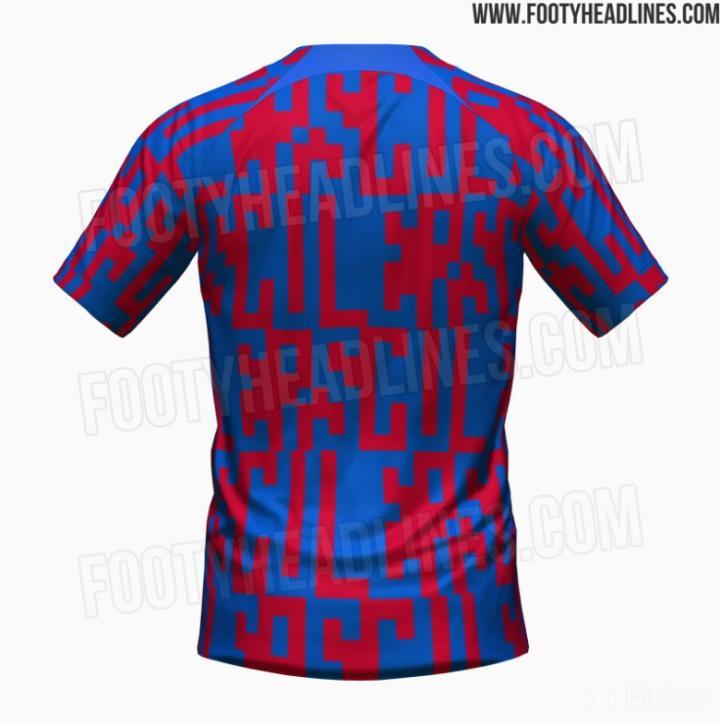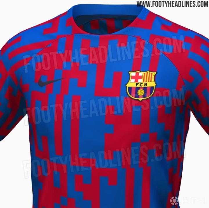 足球装备网站FootyHeadlines曝光了巴塞罗那22/23赛季的赛前训练服,这件衣服使用了红蓝两色的马赛克图案,非常的鲜艳。