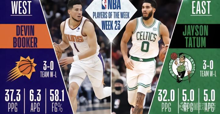 恭喜!塔图姆和布克分获上周东西部最佳球员