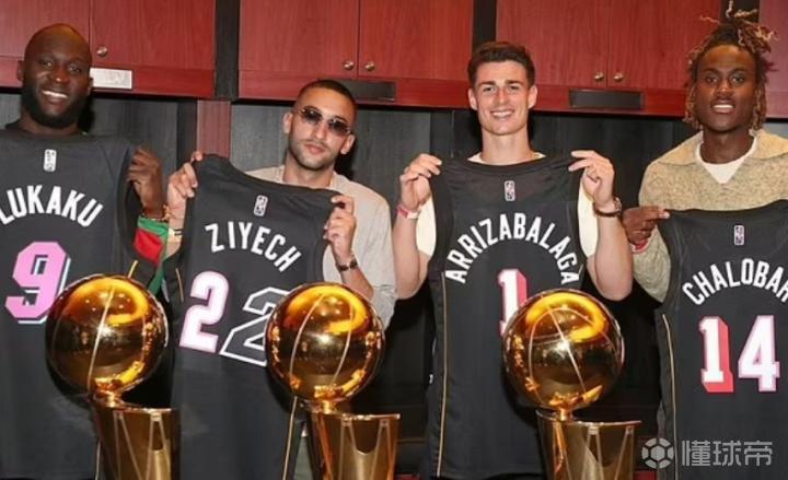 上周日热火主场与篮网的比赛中,卢卡库、齐耶赫、凯帕和查洛巴出现在了比赛现场,热火向他们赠送了印有名字的主场球衣,4人还与热火的3座总冠军奖杯合影留念。