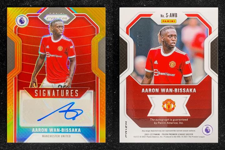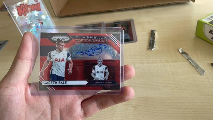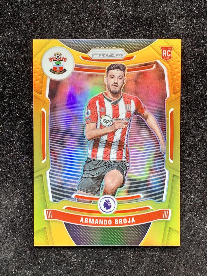 最后我们组队开拆的是今年的英超prizm hobby盒,也是狠货多多,首先是这个系列非常受期待的小妖们。世界限量25张橙折的马丁内利;世界限量10张金折的布罗亚以及世界限量99张紫折的奥利塞!