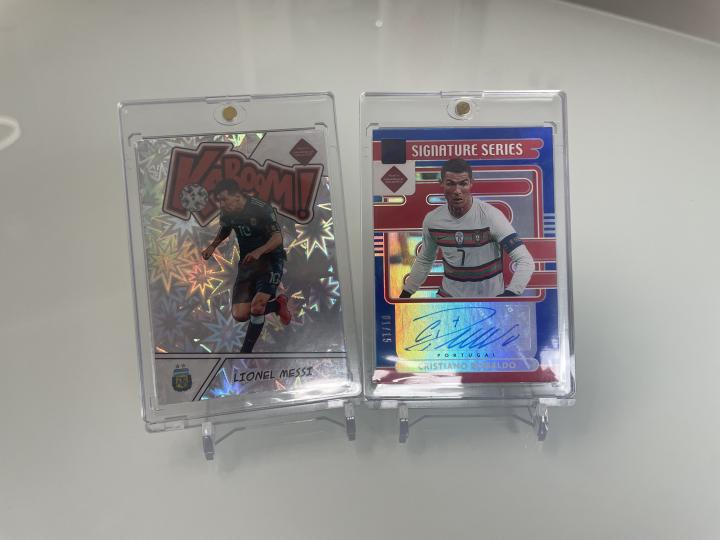亚洲版英超prizm我们拆出了系列最大签字球星卡,纳尼和C罗世界限量8张的双人签字!还有插放在亚洲pz很少见的kaboom!一盒出的这两张算是亚洲版PZ的顶峰了!