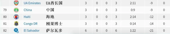 中国在这个世界杯榜单上排名倒数第4,如果我们再多参加几届排名或许会有所变化。