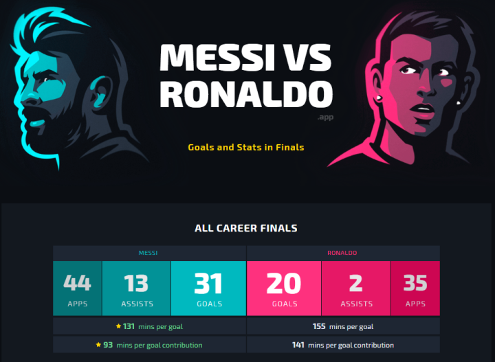 梅西和C罗生涯决赛数据呢?