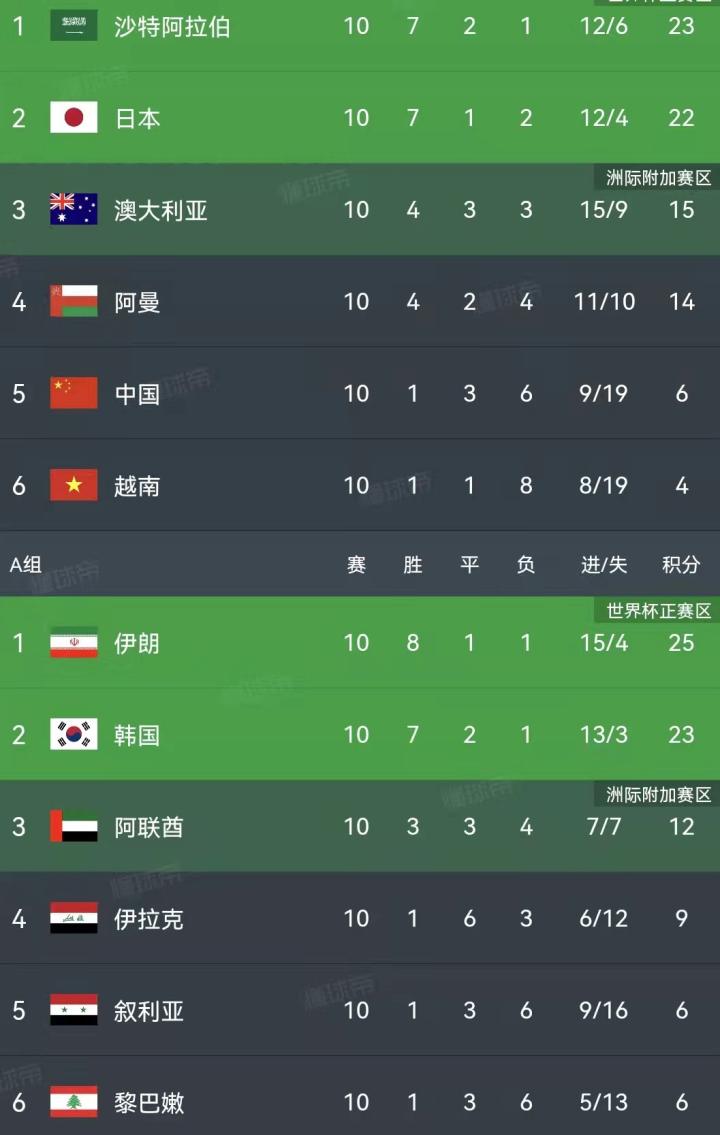 【世界杯亚洲区晋级队伍全部确定,澳洲阿联酋争最后0.5个名额】