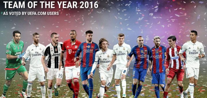 欧足联2016年最佳阵容:皇马四人,巴萨三人