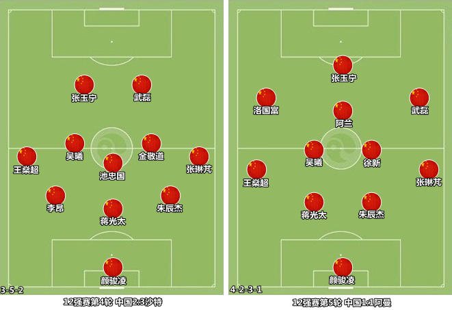 在李铁执教的六场12强赛中,中场是国足阵容中变化最大的位置。在吴曦&徐新组合确立之前,李铁曾先后使用过张稀哲、尹鸿博、金敬道和池忠国等人。在这个过程中,国足未能在任何时段展现出控制比赛的能力。随着洛国富和阿兰逐渐进入状态,李铁开始消减技术型中场的名额,主打较为务实的阵型架构,彻底从40强赛阶段的思维框架中走了出来,国足进入围绕锋线球员组织进攻的阶段。