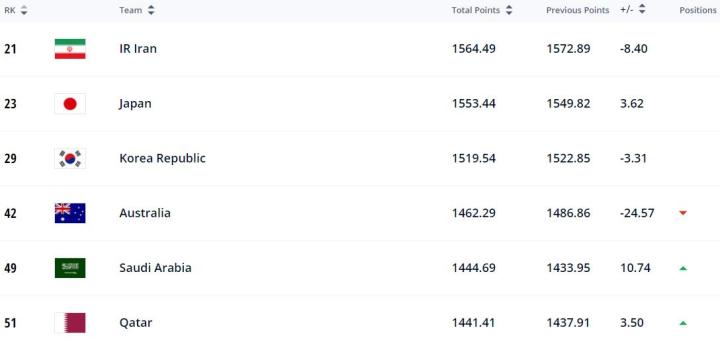 其中伊朗、日本、韩国、卡塔尔以及沙特阿拉伯都已经获得了世界杯的入场券,即便是澳大利亚也获得了参加附加赛的资格,仍然具备进军世界杯的几率。