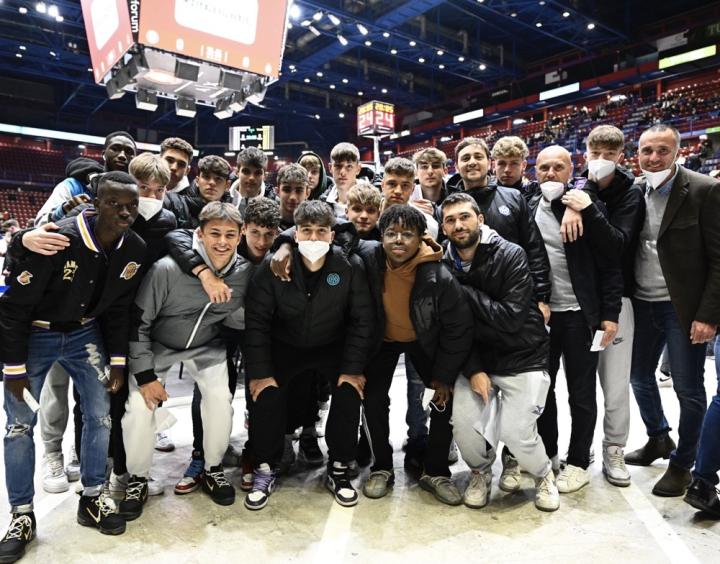 国际米兰青年队的小伙子们为同城的米兰奥林匹亚篮球...