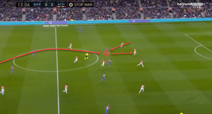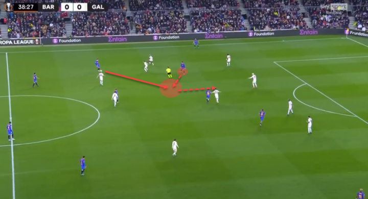 在第一个场景中,托雷斯回撤给阿劳霍一个推进的选择,但在这种情况下,前锋并不总是要接球。请注意,他已经吸引了很多人的注意,阿劳霍把球送给他是弊大于利。相反,巴萨应该去找一个不同的解决方案。