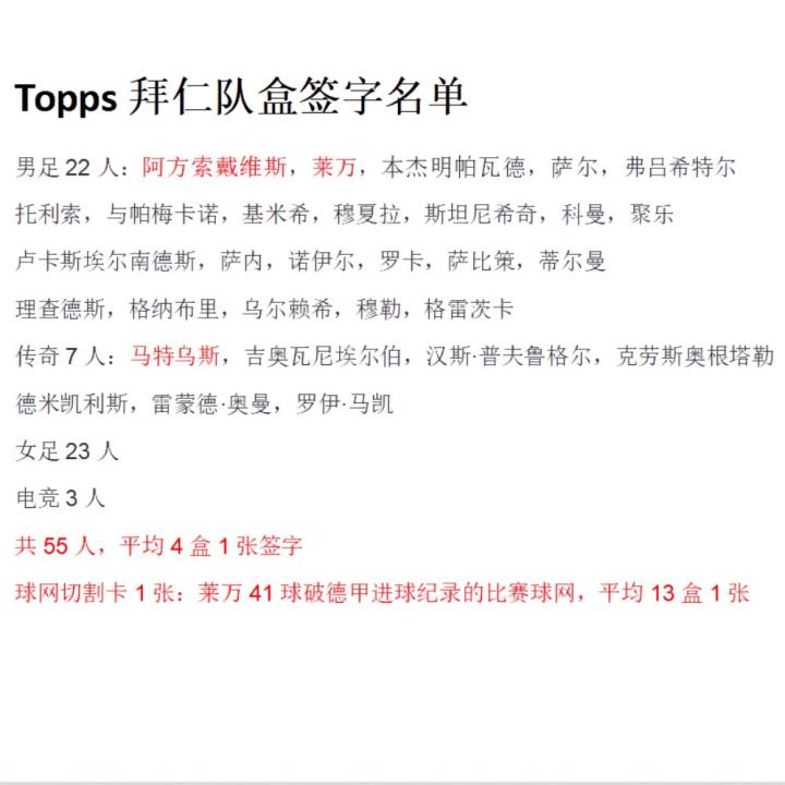先来看看拜仁盒的配置,这次Topps可谓诚意满满,光是签字名单都多达55人,更是包含了拜仁男足女足众和众多传奇名宿。