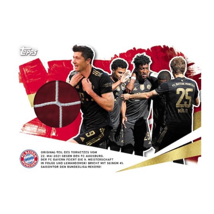 值得一提的是,为了庆祝莱万打破德甲进球记录(2020-21德甲收官战,拜仁主场对阵阵奥格斯堡,莱万第89分钟破门得分,自此莱万以41球就此打破了盖德穆勒尘封了49年的德甲单赛季进球纪录),这场比赛的球网被切割成了球网实物卡随机放入了此次的拜仁队盒中,平均13盒一张。