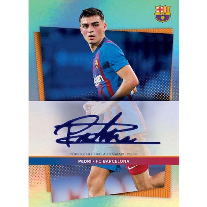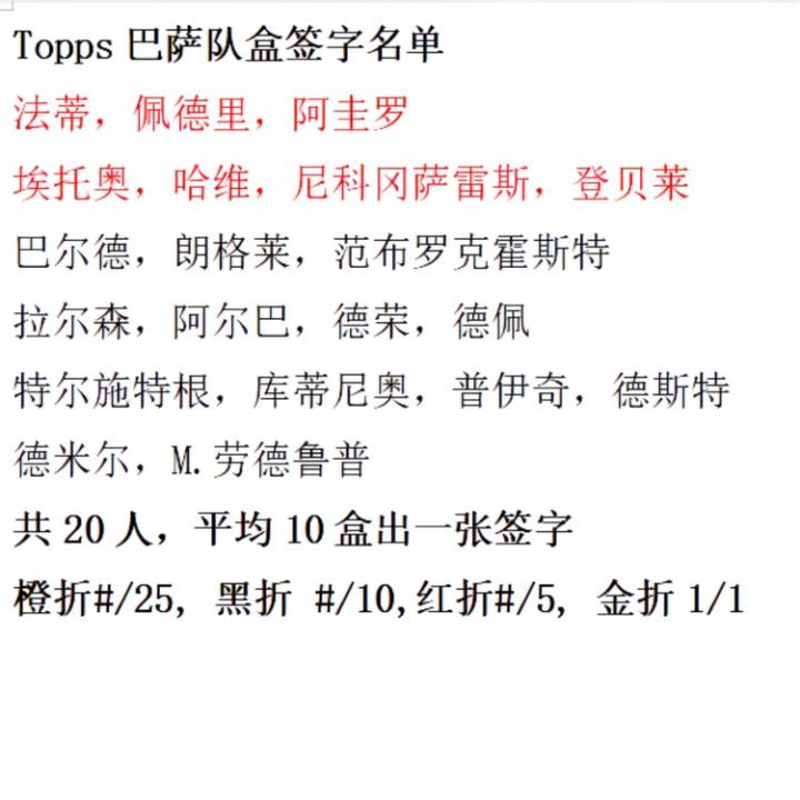 再来看看巴萨盒的配置,签字名单有20人,除了有巴萨现役球员(佩德里、法蒂等)外,还有埃托奥,哈维等人的亲签卡(每盒包一张带编的折射,平均10盒一张签字)