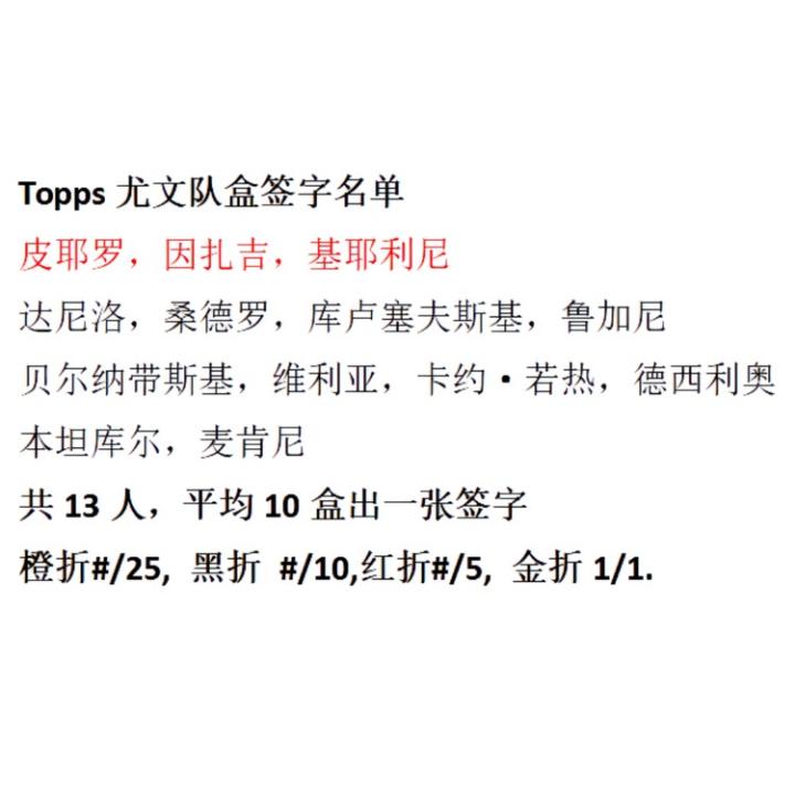 最后来看看尤文的队盒配置,共有13人的签字名单(平均10盒一张签字)每盒也是保证一张带编的折射