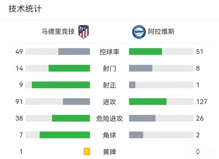 第62分钟,马竞后防线漏人,埃斯卡兰特帮助阿拉维斯扳平比分。