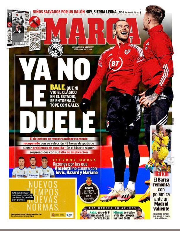 《马卡报》周三头版报道称,在对阵奥地利的世界杯附加赛前一天,加雷斯·贝尔已经痊愈