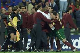 这场“经典”战役中,韩国队开始展现自己的“黑”马本色,开场多次诡异判罚后,葡萄牙人的心态失衡了,若奥-平托飞铲被罚下。当气愤的平托冲向裁判时,本托是阻止他的球员之一。