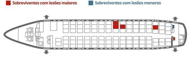 6名幸存者中,3人坐在机身中部,3人坐在机身尾部。其中红色为受重伤幸存者所坐位置,蓝色为受轻伤幸存者所坐位置。蓝色位置坐的是空姐西梅娜·苏亚雷斯,她在事故中只受了轻伤。机身末端红色位置坐的是技师埃尔文·图米里,他的伤势也不重。幸存的6人中,4人为巴西人,2人为玻利维亚人,包括沙佩科人队左后卫阿兰·鲁斯切尔、替补门将杰克逊·福尔曼和中卫内托,巴西记者拉斐尔·恩泽尔,空姐希梅纳·苏亚雷斯和机械师埃尔文·图米里。阿兰与福尔曼是在一起踢球十多年的队友,在一起效力于沙佩科人前两人在2009到2013年还一起效力于青年人体育会队。阿兰被邀请从自己的座位上叫到了福尔曼的旁边的空座位上,来一起听音乐,而事后来看,正是这次换位让阿兰捡回了自己的性命。