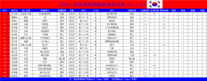 附:韩国球员旅欧表现(4.1~3)