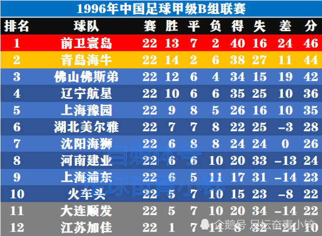 1996年甲B积分榜