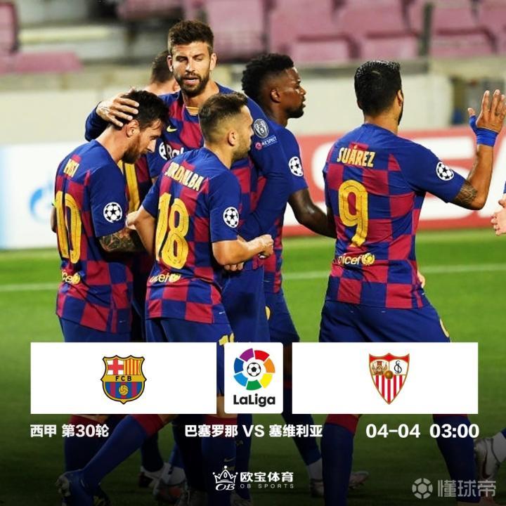 西甲第30轮巴塞罗那VS塞维利亚前瞻欧宝体育巴萨...