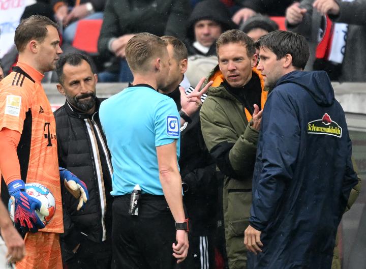 不过错就全在拜仁身上吗?从规则上看,拜仁可以根据德国足球规则三(针对球员上下场的规则)第三条规定为自己辩护:只有在裁判员的手势允许后,且应换下球员离场后替补球员才能上场。丁格特的操作显然不符合这项规定。因此,整件事情的如何界定这一失误的过错方就很重要了。如果是丁格特及其裁判团队被判定负有主要责任,那么弗赖堡就会败诉。如果裁定主要责任在拜仁的教练团队,则拜仁判负