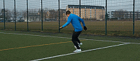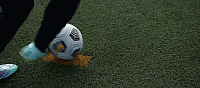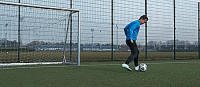 因为我们要直接骗过对手,所以我们要做插花脚切球,我们要先做内侧触球外侧触球,最后简单的插花脚触球。