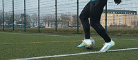我们先用惯用脚做一个向内踩单车,然后用我们的弱势脚做一个插花脚外切。
