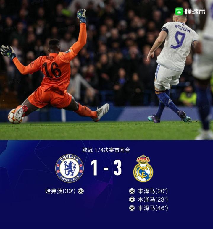 喜力®啤酒欧冠战报:切尔西1-3皇马,本泽马欧冠连场戴帽