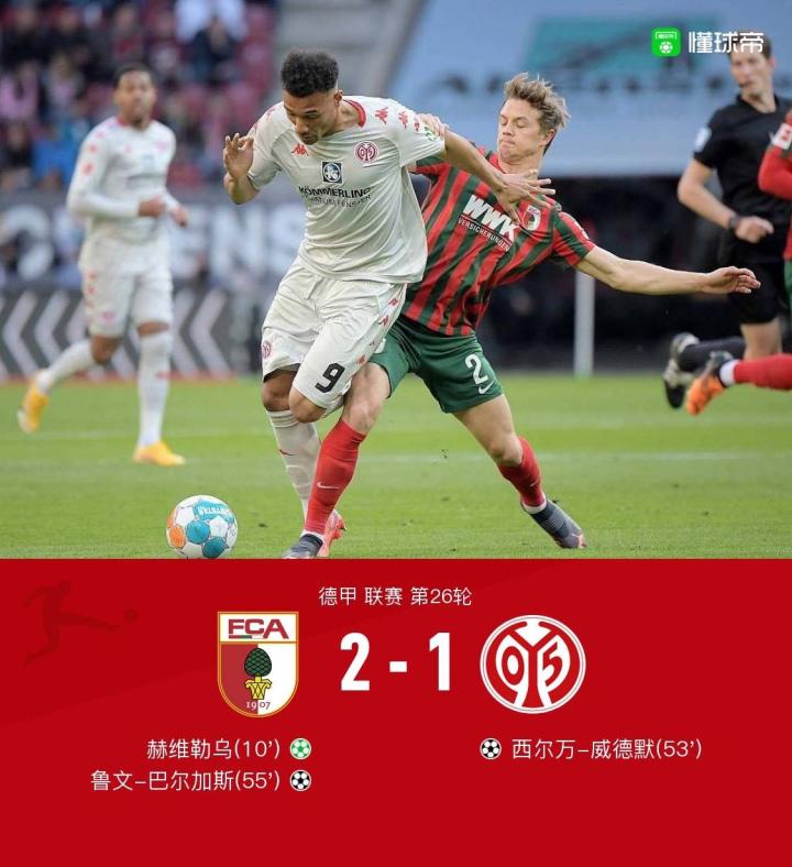 奥格斯堡2-1美因茨,鲁文-巴尔加斯替补制胜,威德默破门