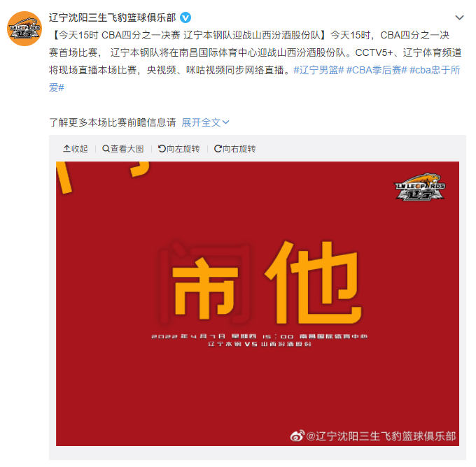 今天下午3点,这场焦点比赛就要开始了,辽宁队跟山西队摩拳擦掌,现在赛前海报方面进行较量。辽宁队这边先出了一个海报,是山西队的助威口号“闹他”,但是那个“闹”字没有了外面的“门”,意思就是“闹他没门”。不得不说,这个设计还挺有意思的。