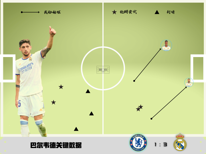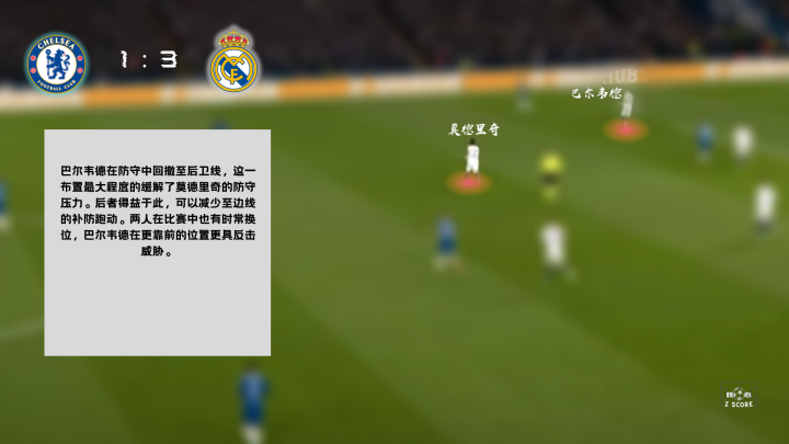 这场切尔西的左路进攻陷入瘫痪得益于两位英雄的出色发挥。肋部和边路严密的防守让切尔西的锋线球员的灵活跑位无从施展,进而也锁死了AZP和吕迪格后插上的空间。导致切尔西的过度依赖詹姆斯的插上,使维尼修斯有更大的空间去突破切尔西孱弱的右路防守。至此打破了对手的攻守平衡为球队的胜利奠定基础。