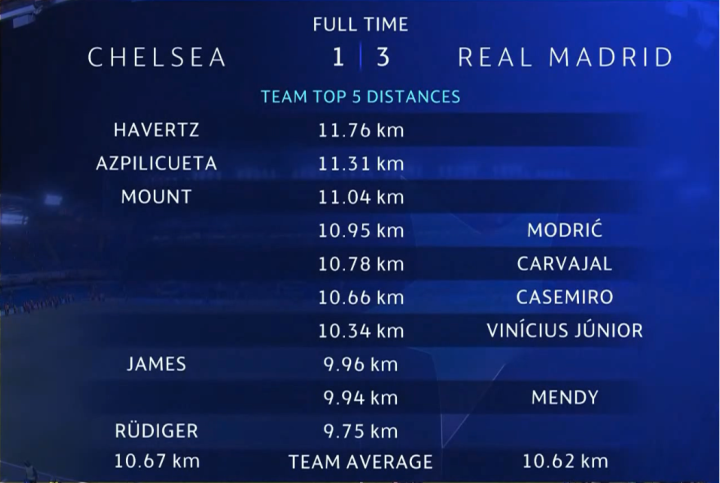 这是赛后的跑动数据,能在平均年龄远大于对手的情况下总跑动距离不相上下,对比上一场联赛的数据,老将们本场有多拼命可见一斑。三军用命的皇马依然是欧冠赛场不可小觑的一股力量。和上赛季对阵利物浦一样,首回合的3-1只会让第二回合的对手更将疯狂地对皇马的防线发起冲击。革命尚未成功同志们仍需在第二回合努力。只有全队保持这股拼劲加上本泽马的活跃和运气,皇马才能够顺利挺进下一轮。