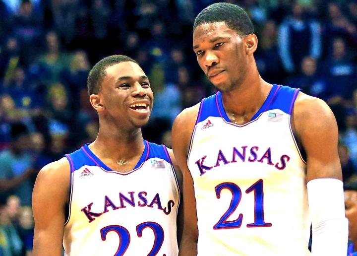 今年堪萨斯夺得NCAA冠军,让恩比德兴奋不已。2013-14赛季,二人都在堪萨斯效力了一个赛季。恩比德入选大12区最佳新生阵容、最佳防守阵容和最佳二阵,还当选赛区最佳防守球员;维金斯则当选赛区最佳新生,入选赛区最佳一阵和全美二阵。可惜,恩比德由于背伤缺席了2014年大12区锦标赛和NCAA锦标赛,堪萨斯止步于32强。
