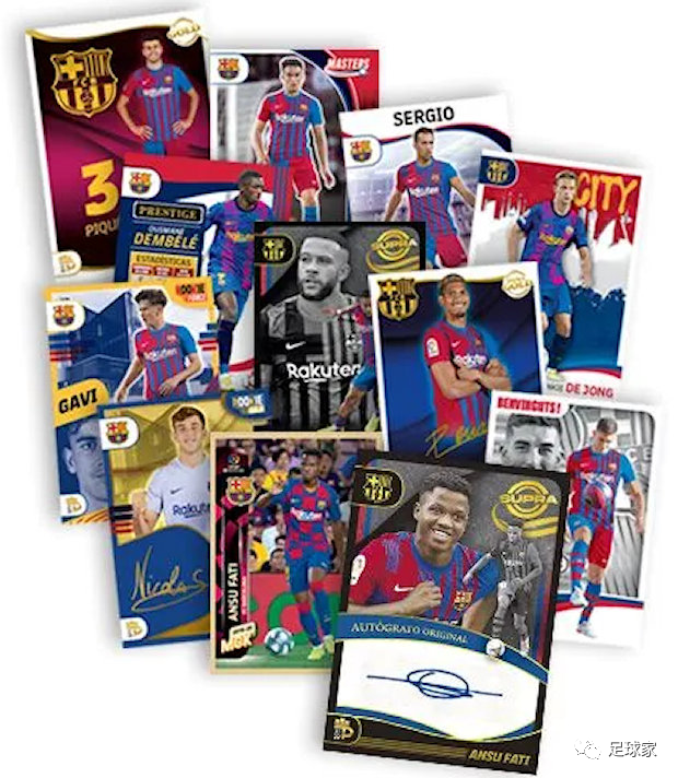 相比Topps单盒50张卡量,Panini的巴萨队盒直接拉满到192张