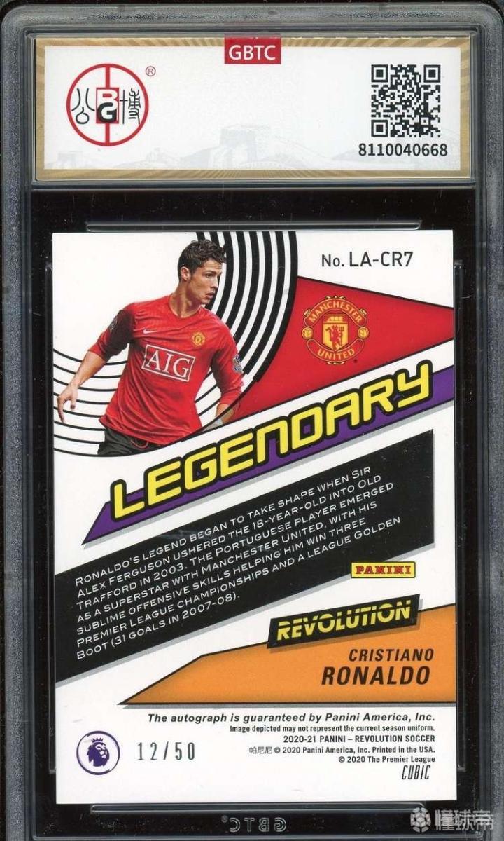 帕尼尼 英超 革命 曼联 C罗 签字卡 12/50编 传奇签 完美签字 公博评级总体9分 签字10分满分 总裁签字到哪都是抢手货,何况更是这张50编立方折完美签,革命系列的颜值也是顶级水准配上C罗妥妥稳!