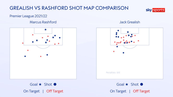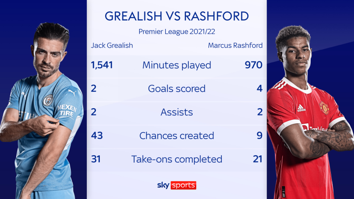 令人难以置信的是,即使拉什福德本赛季状态滑落至此,他在进球和助攻方面还是超过了杰克-格拉利什(2球2助攻)。