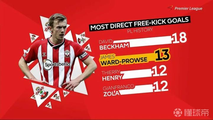任意大师沃德-普劳斯已经在英超打进了13个直接任...