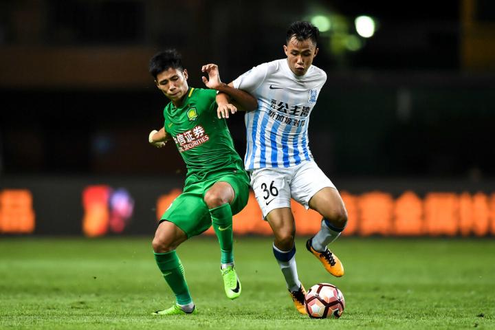 当时的双子星,巴顿和朱朝庆,都是山东人,朱朝庆在年轻时候还曾试训过山东,但最终去了国安青训,因为U23政策的开启,巴顿和朱朝庆分别从梅州和四川召回,报名参加了2017年的中超联赛,那一年里,司职前锋的朱朝庆因为前锋位置被外援索里亚诺占据,获得的机会并不多,最终他在联赛后半阶段获得了机会,当时第21轮,国安客场挑战天津天海,朱朝庆在89分钟出场,完成了中超的首秀。